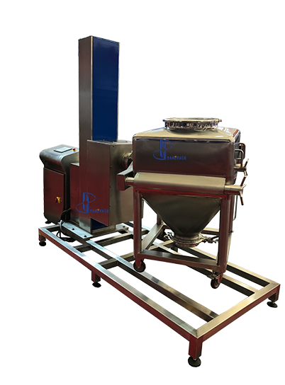 該機(jī)由立柱、機(jī)座、回轉(zhuǎn)叉架、驅(qū)動、制動、控制系統(tǒng)等部件組成。將混合料斗推入回轉(zhuǎn)叉架并鎖緊螺母,啟動控制系統(tǒng),將料斗提升到混合高度并可靠定位。驅(qū)動系統(tǒng)按設(shè)定的時間、轉(zhuǎn)速等數(shù)據(jù)進(jìn)行自動混合?;旌献鳂I(yè)結(jié)束,回轉(zhuǎn)叉架垂直停止,料斗自動下降到地面,整機(jī)停止,并打印工藝數(shù)據(jù)。松開回轉(zhuǎn)叉架的緊鎖螺母,將料斗推出到下一個工序。
