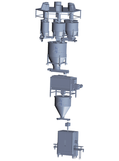 倒料、儲(chǔ)存、自動(dòng)配料、混合和包裝系統(tǒng)